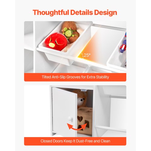 VEVOR Scaffale per Giocattoli, Carico di 10 kg Organizzatore per Giocattoli a 4 Ripiani con 8 Contenitori in Plastica Flessibili, per Camera da Letto, Aula, Cameretta dei Bambini, Bianco