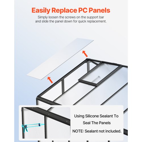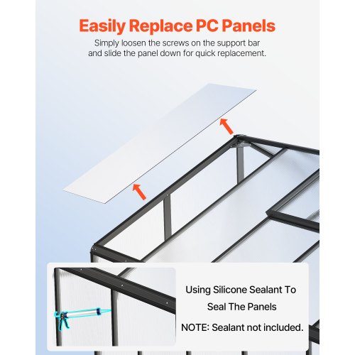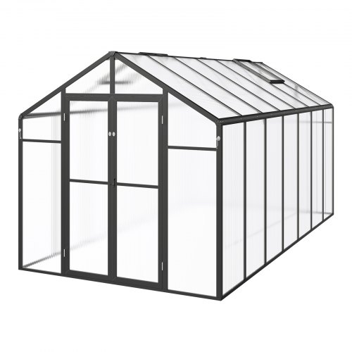 VEVOR Serra in Policarbonato 236 x 402,5 x 207 cm, Serra per Esterni con 2 Finestre di Ventilazione, Serra in Stile Padiglione con Porta a Battente, Kit Serra in Alluminio per Esterni, Giardino