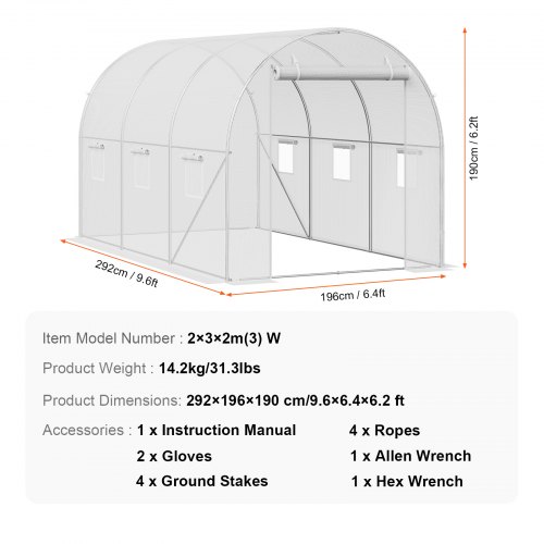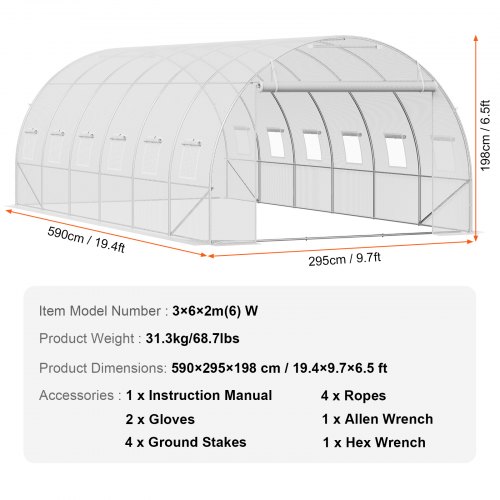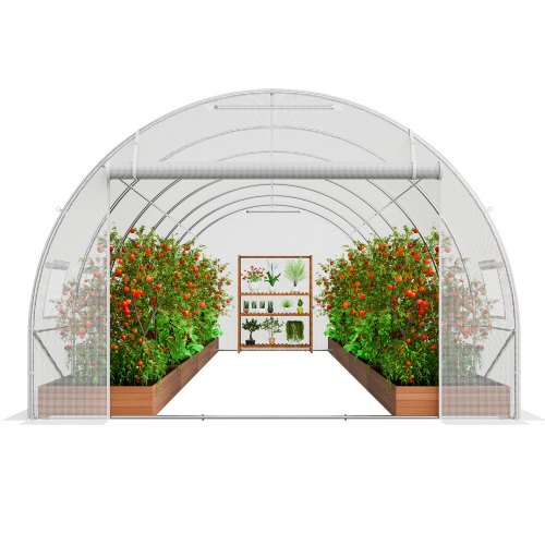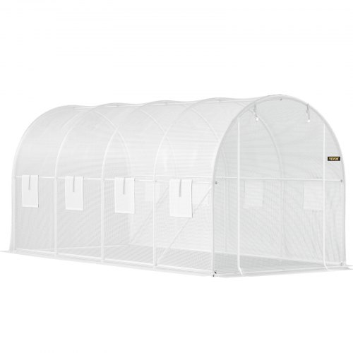 VEVOR Serra a tunnel walk-in 3,9 x 1,9 x 1,8 m, Serra per piante a tunnel con telaio in acciaio zincato, Copertura in PE bianco, Porta con cerniera avvolgibile 6 finestre esterne, Serra per piante
