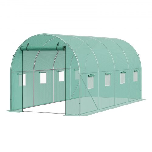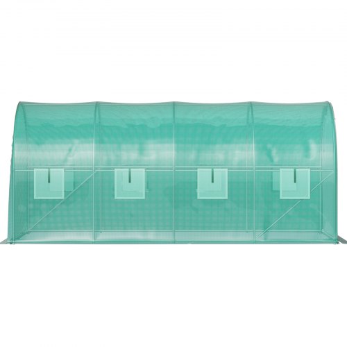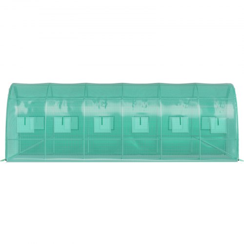 VEVOR Serra a tunnel da esterno per giardinaggio walk-in 50 x 30 x 2 metri, Serra per piante telaio in acciaio galvanizzato, Copertura in PE verde, Porta con cerniera arrotolabile e 12 finestre