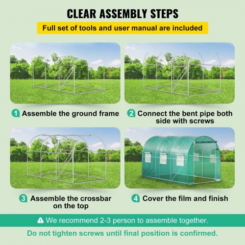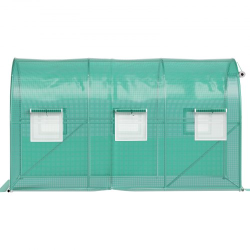 VEVOR Serra a tunnel walk-in, Serra a tunnel 11,3 x 6,4 x 6,3 piedi, Serra calda per piante con telaio in acciaio zincato, Copertura in PE verde, Porta con cerniera avvolgibile 6 finestre per esterni
