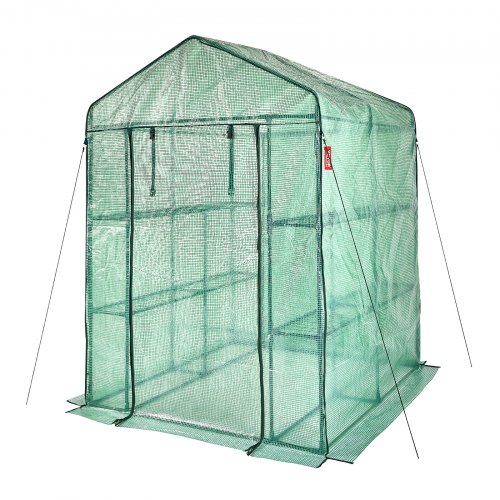 VEVOR Serra Portatile con Ripiani Telone in PE Porta Arrotolabile 141 x 141 x 200 cm Carico Massimo 15 kg da Giardino Cortile Terrazza Struttura Pieghevole, Serra con Ripiani per Piante Fiori Verdure