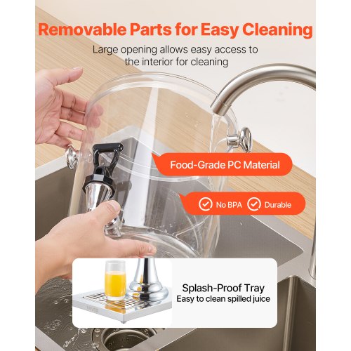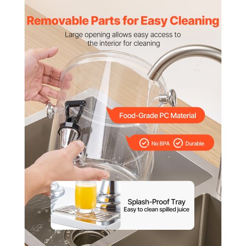 VEVOR Distributore di Bevande, 8 L per Feste, Contenitore di Succhi in Acciaio Inox e Plastica con Rubinetto per Camera del Ghiaccio, Distributore di Tè, Limonata, Succo d'Acqua, per Ristoranti
