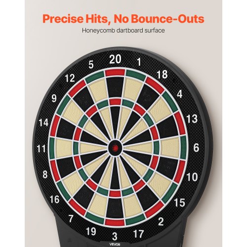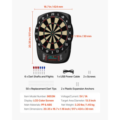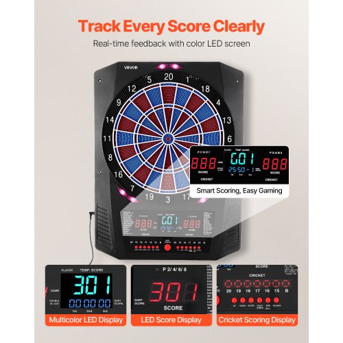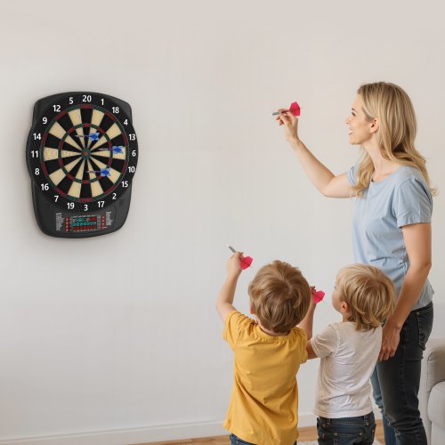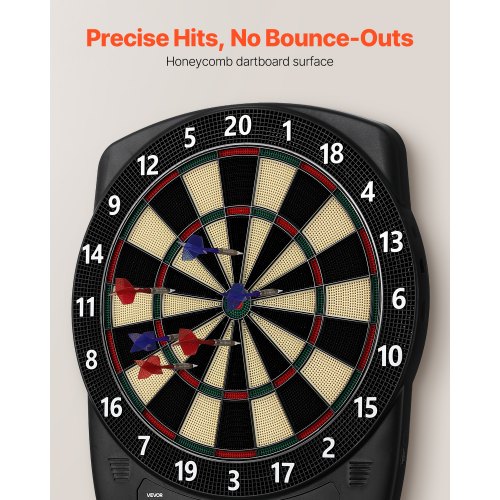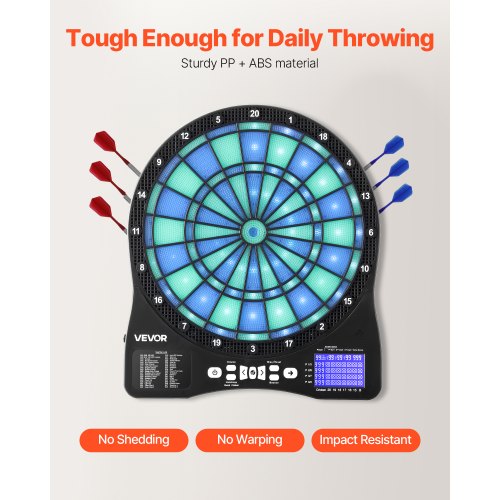VEVOR Bersaglio Elettronico per Freccette, Bersaglio 391 mm con 43 Giochi e 320 Varianti per un Massimo di 8 Giocatori, 6 Aste per Freccette con Alette e 50 Punte Morbide, Schermo LED a Colori