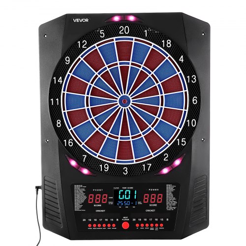 VEVOR Bersaglio Elettronico per Freccette, Bersaglio Illuminato a LED con 48 Giochi e 500 Varianti, Include 6 Aste per Freccette con Alette e 50 Punte Morbide, Schermo LED a Colori, per 8 Giocatori