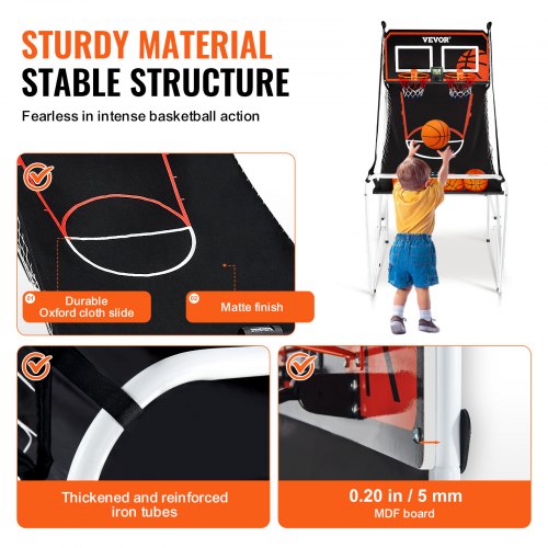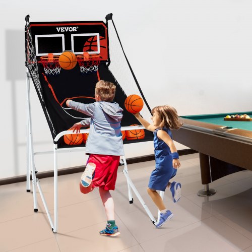 VEVOR Gioco Arcade di Pallacanestro Pieghevole, Sport Domestico, 2 Persone 5 Palloni 8 Modalità, Tabellone Segnapunti Elettronico LCD e Pompa di Gonfiaggio, Gioco per Bambini, Adulti, Bianco Nero