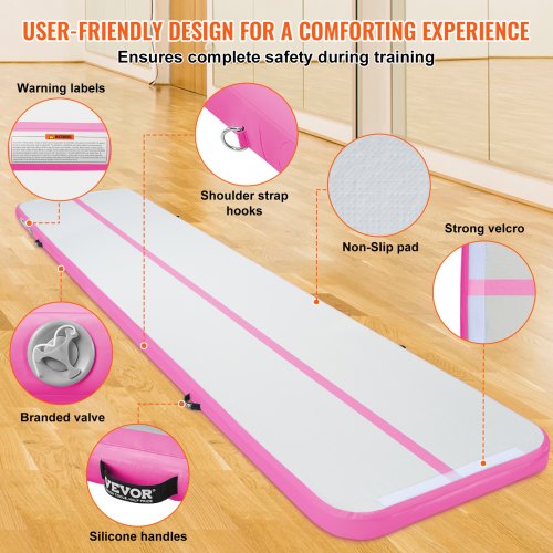 VEVOR Tappetino da Ginnastica Gonfiabile da 4 Pollici di Spessore, Tappetini da Allenamento per Uso Domestico/Palestra/Yoga/Cheerleader/Spiaggia/Parco/Acqua, 16 Piedi, Rosa