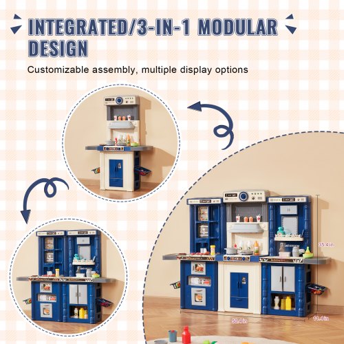 VEVOR Set da Cucina per Bambini 3-8 Anni, Cucina per Bambini 3 in 1 con Spruzzatore Simulato, Suoni e Luci, con Set di Accessori da Cucina 74 Pezzi per Bambini Piccoli, Bambini in Età Prescolare, Blu