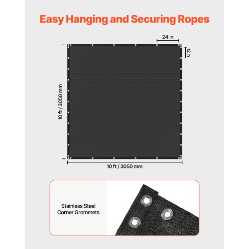 VEVOR Vela Ombreggiante con Protezione Solare, 305 x 305 cm, per Pergolato con Occhielli in Acciaio Inox, Telo Ombreggiante con Materiale HDPE, per Esterno Patio Giardino Cortile, Nero