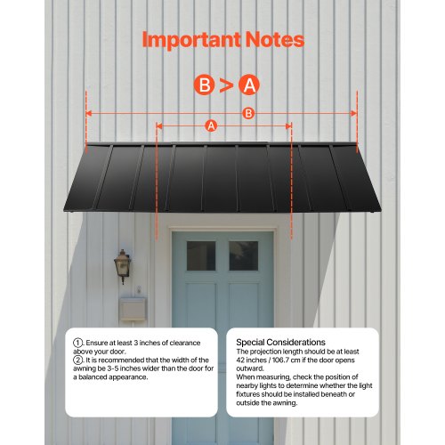 VEVOR Pensilina per Finestra Porta da 2032 x 910 mm Tettoia per Porta Ingresso, Acciaio Verniciato a Polvere Antiruggine, Pensilina per Patio Esterno, per Protezione da Pioggia, Neve e Luce Solare