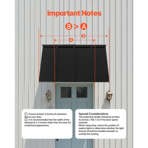 VEVOR Pensilina per Finestra Porta da 1219 x 1066 mm Tettoia per Porta Ingresso, Lega di Alluminio Antiruggine, Pensilina per Patio Esterna, per Protezione da Pioggia, Neve e Luce Solare