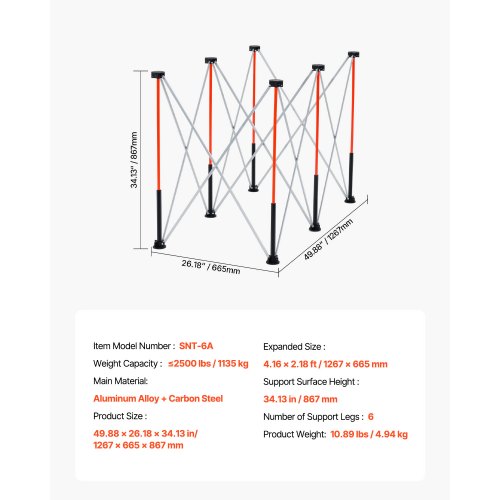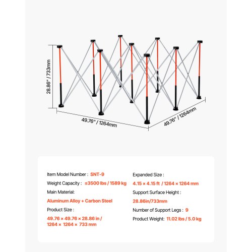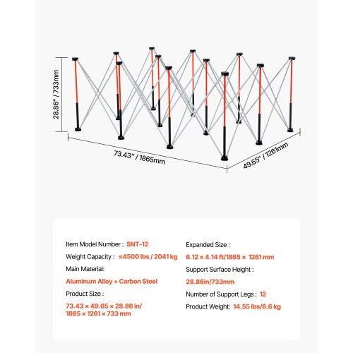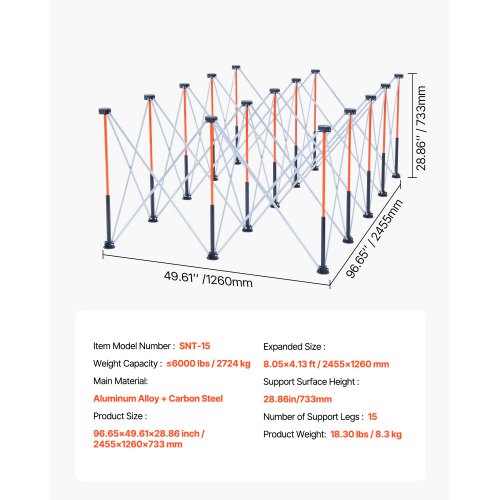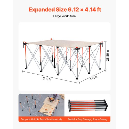 VEVOR Banco da Lavoro Pieghevole Portatile 2455 x 1260 mm Tavolo di Lavoro Pieghevole Senza Montaggio, Carico di 2724 kg con Borsa Portaoggetti, Piano del Tavolo Non Incluso, per Garage, Officina