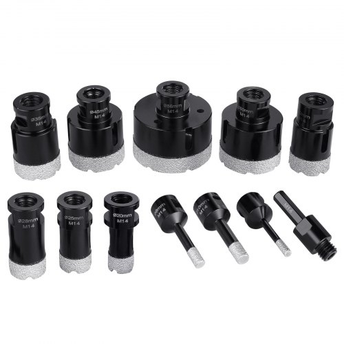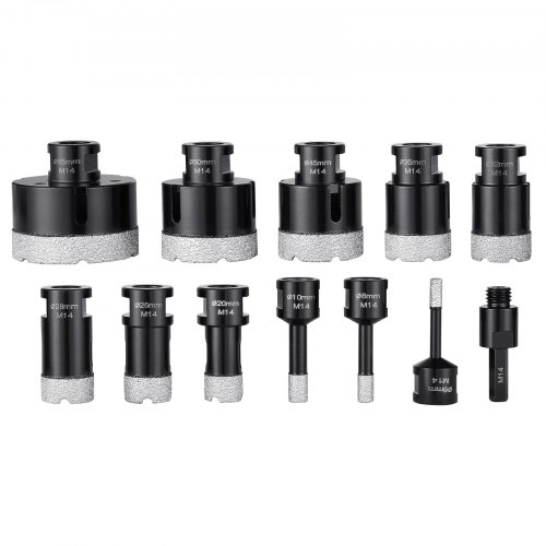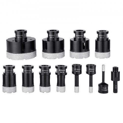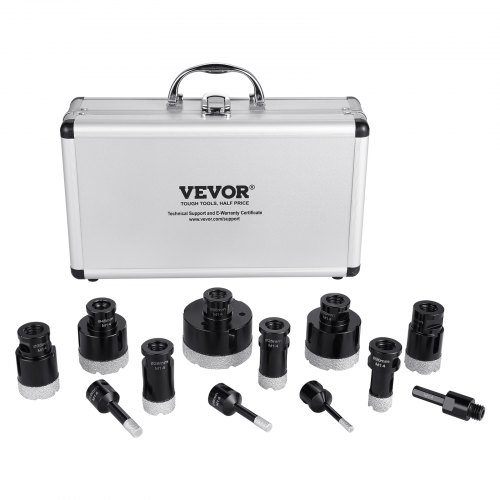 VEVOR Set di punte diamantate per carotaggio 11 pezzi 6/8/10/20/25/28/32/35/45/50/65mm Set di seghe a tazza diamantate con connettore M14 e custodia per trapano diamantato a secco e a umido