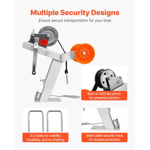VEVOR Supporto per Verricello per Rimorchio per Barche con Rullo, Carico da 544 kg Supporto per Verricello per Barche con Bullone a U per Timone di Traino da 50,8-76,2 mm x 76,2-101,6 mm
