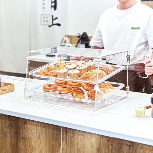VEVOR Espositore per Pasticceria 2 Ripiani Accesso sul Retro Ripiani Rimovibili in Acrilico Trasparente, Espositore da Pasticceria per Pane Dolci da Pasticceria 510 x 350 x 35 mm Vetrina da Panificio
