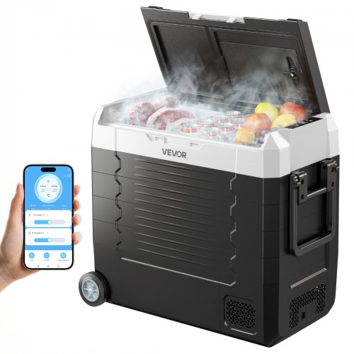 VEVOR Frigorifero Portatile da Auto con Compressore Capienza 45 Litri, Contenitore Refrigerante Doppia Zona Temperatura tra -20 a 20 °C Controllo APP, Mini Frigo per Auto Caravan da Campeggio Pesca