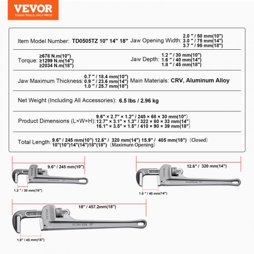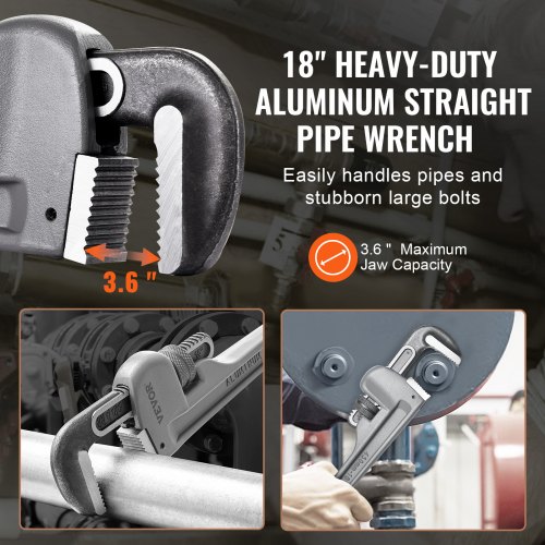 VEVOR Set di 3 Chiavi per Tubi, Chiave per Tubi Dritta Regolabile in Alluminio da 254/355/457 mm con Ganascia Resistenza e Impugnatura Ergonomica, Design Appeso, Riparazioni Tubi dell'Acqua, Auto