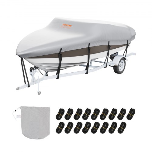 VEVOR Copertura per Pontone, 19'-20', Tessuto Oxford PU di Grado Marino 800D, con Copertura Motore, 16 Cinghie con Fibbia Antivento, Adatta per 19'-20'L, Larghezza Trave fino a 96", Grigio