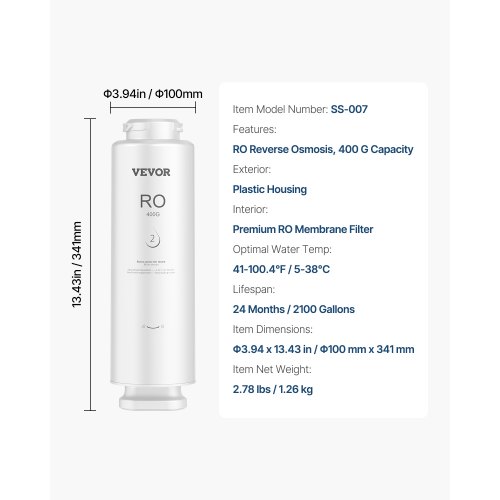 VEVOR Sistema di Osmosi Inversa Filtro di Ricambio per Osmosi Inversa a 9 Stadi da 400 GPD, Cartuccia Filtro RO per Tubo Idraulico Riduce Piombo, Cloro, Ruggine, Sostituzione per Filtro Osmosi