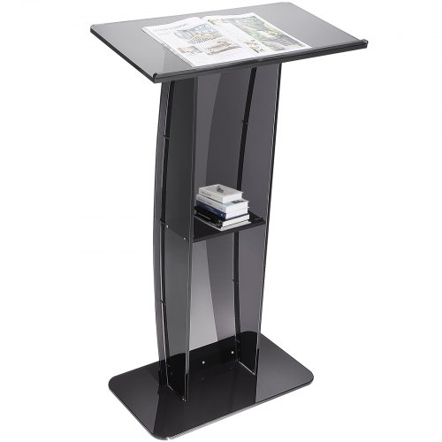VEVOR Podio per Conferenze 68,5 x 33 x 120 cm Podio per Presentazioni in Acrilico Piano Inclinato con Ripiano Leggio in Piedi, Podio per Lettura Conferenza da Ufficio Scuola Chiesa in Acrilico Nero