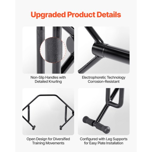 VEVOR Bilanciere Esagonale con Telaio Aperto, Barre per Shrug da 50 mm e Capacità di 360 kg con Impugnature Zigrinate, Attrezzatura per Sollevamento Pesi e Allenamento della Forza per Palestra