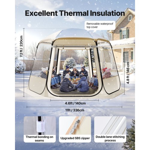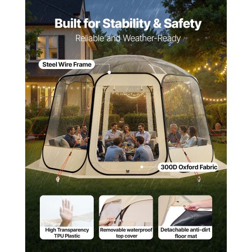 VEVOR Tenda a Cupola Pop-Up, 336 x 305 x 220 cm, Impermeabile e Resistente ai Raggi UV, Tenda da Campeggio Trasparente, con Finestre, Vista Panoramica a 540°, per 8 a 10 Persone, Patio, Cortile