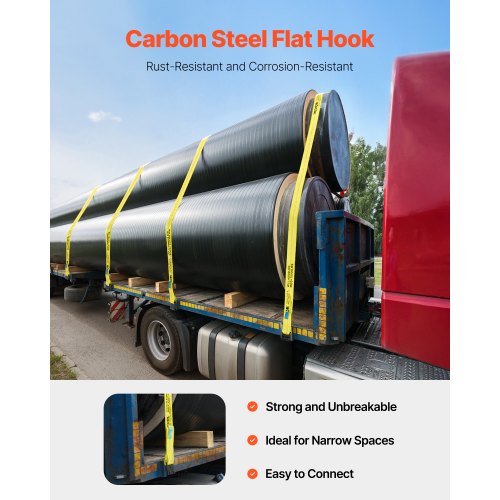 VEVOR Cinghie per verricello, 4" x 40', Capacità di carico 6000 libbre, Resistenza alla rottura 18000 libbre, Cinghie per camion con gancio piatto, giallo (confezione da 10)