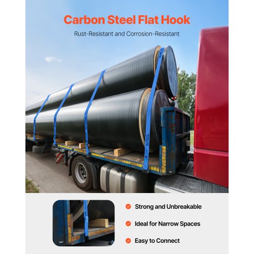 VEVOR Cinghie per verricello, 4" x 30', Capacità di carico 6000 libbre, Resistenza alla rottura 18.000 libbre, Cinghie per camion con gancio piatto, blu (confezione da 10)
