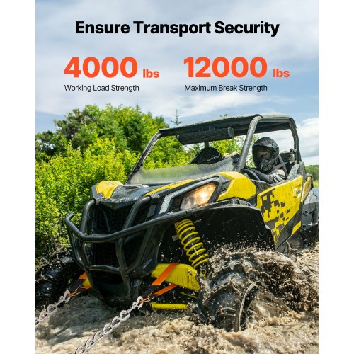 VEVOR Ancoraggio per Auto con Ancoraggi a Catena, Cinghie per Pneumatici 2"x120", Carico di Lavoro 5865 LBS, Resistenza alla Rottura 11023 LBS, per ATV, SUV, UTV, Camion, Confezione da 4