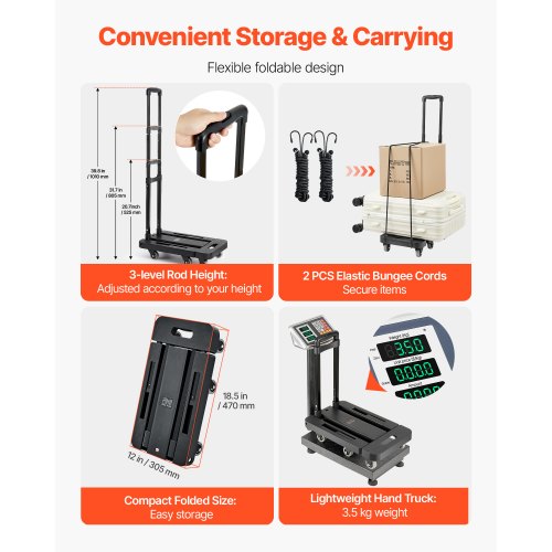VEVOR Carrello a Mano Pieghevole in Alluminio Carrello a Mano Carrello Portacarichi Carico Max. 363kg, Carrello a Mano Pieghevole in Carrello con Piattaforma Ruote per Trasporto di Merci da Magazzino