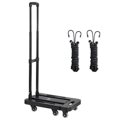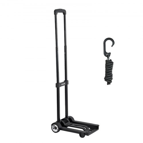 VEVOR Carrello a Mano Pieghevole, Capacità di Carico di 49,9 kg, Carrello Portabagagli Pieghevole con 2 Ruote, 1 Corda Elastica, Carrello Multiuso per Trasporto Bagagli, Ufficio, Trasloco, Nero