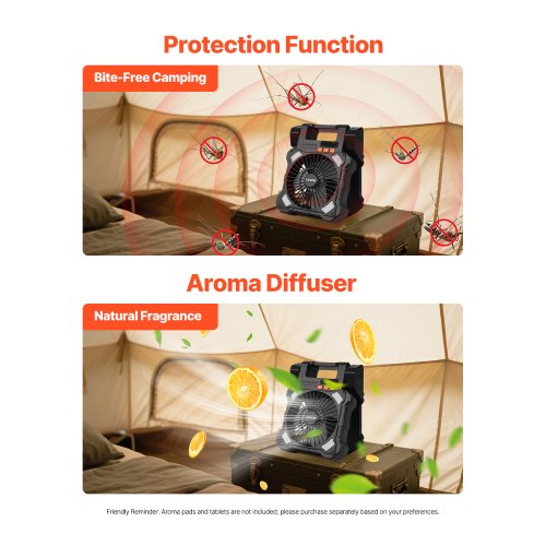 VEVOR Ventilatore Solare Ricaricabile 10000 mAh con Lanterna a LED, Ventilatore Portatile Senza Fili da 18 cm con Pannello Solare Pieghevole da 4 W 4 Velocità, Alimentato a Batteria USB per Campeggio