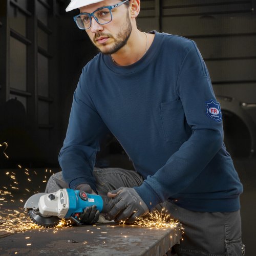 VEVOR FR Camicie, Abbigliamento Ignifugo a Maniche Lunghe, Traspirante Camicia da Lavoro Ignifuga da Uomo con Trattamento Pre-Restringimento e Tasca, per Saldatori, Elettricisti, Blu Navy L