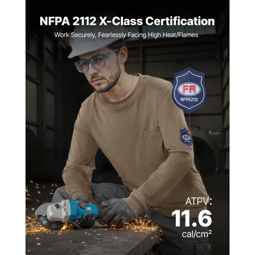 VEVOR FR Camicie, Abbigliamento Ignifugo a Maniche Lunghe, Traspirante Camicia da Lavoro Ignifuga da Uomo con Trattamento Pre-Restringimento e Tasca, per Saldatori, Elettricisti, Grigio XXL