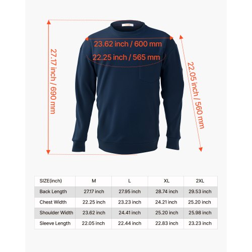 VEVOR FR Camicie, Abbigliamento Ignifugo a Maniche Lunghe, Traspirante Camicia da Lavoro Ignifuga da Uomo con Trattamento Pre-Restringimento e Tasca, per Saldatori, Elettricisti, Blu Navy M