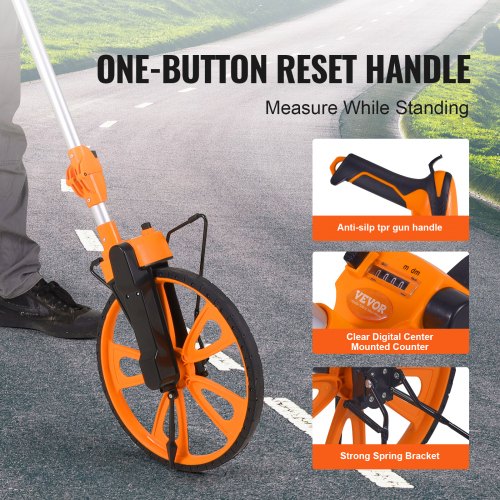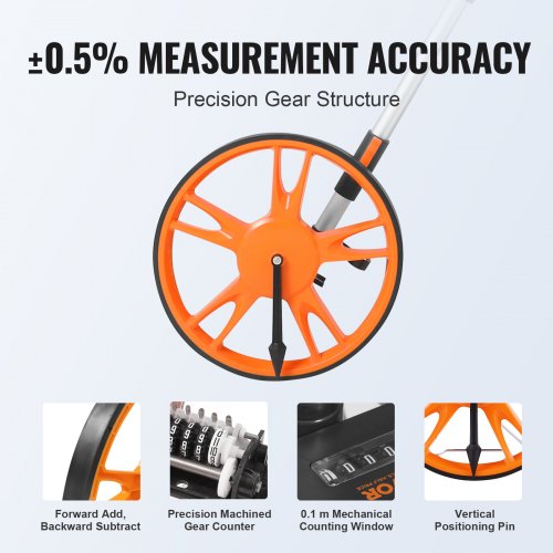 VEVOR Ruota di Misurazione Diametro da 317,5 mm Contachilometri a Distanza da 99999,9 piedi, Ruota di Misurazione Impugnatura Pieghevole Regolabile tra 100-40cm Misuratore Stradale Conteggio Meccanico