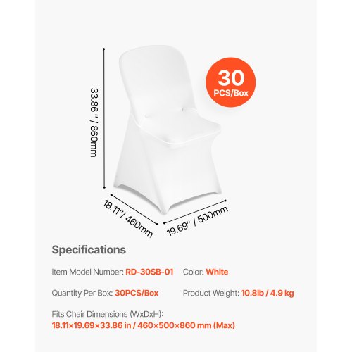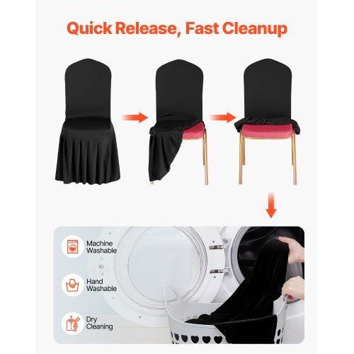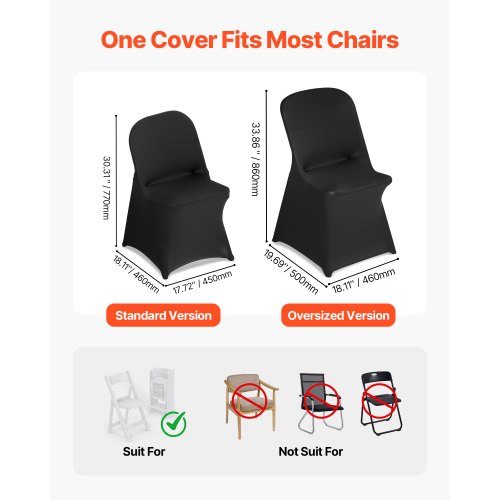 VEVOR Coprisedie con Parte Anteriore Piatta, 30 Pezzi Lavabili e Rimovibili in Poliestere e Spandex per Matrimoni, Sale da Pranzo, Banchetti, Ristoranti, Adatti a Sedie 510 x 450 x 950 mm, Nero