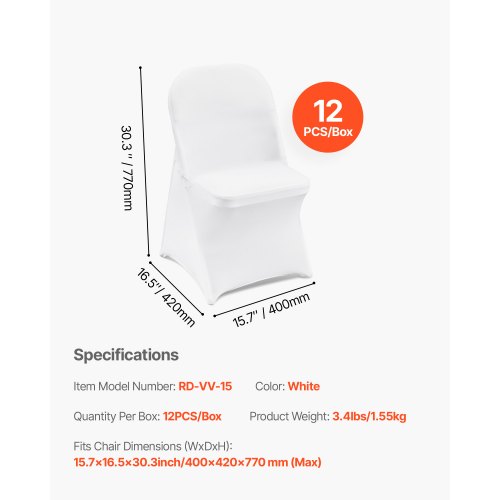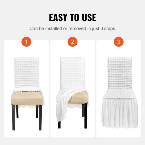 VEVOR Coprisedia in Spandex Elastico, Coprisedia Universale con Gonna, Fodere Rimovibili e Lavabili, per Matrimoni, Vacanze, Banchetti, Feste, Celebrazioni, Sala da Pranzo, Confezione da 4, Bianco