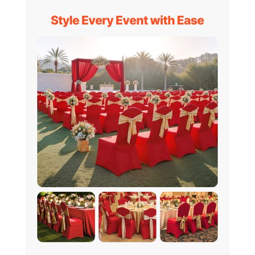 VEVOR Coprisedie con Parte Anteriore Piatta, 30 Pezzi Lavabili e Rimovibili in Poliestere e Spandex per Matrimoni, Sale da Pranzo, Banchetti, Ristoranti, Adatti a Sedie 510 x 450 x 950 mm, Rosso