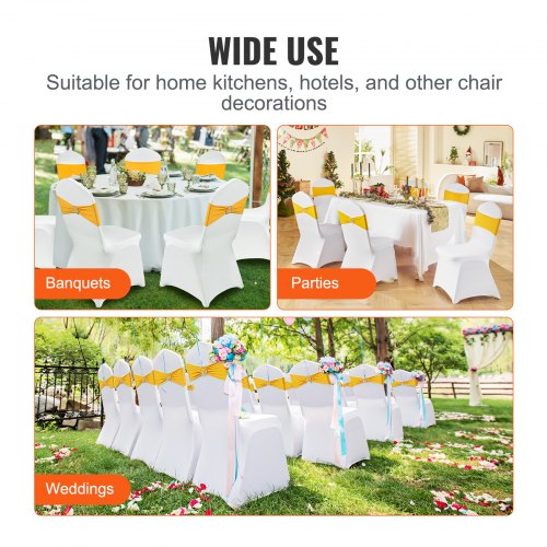VEVOR Fascia per Sedia Elasticizzata in Spandex, Fiocchi Elasticizzati per Sedia con Fibbia Rotonda, Fasce Elastiche per Sedia, per Matrimoni, Banchetti, Decorazione per Sedia 50 Pezzi Giallo Oro