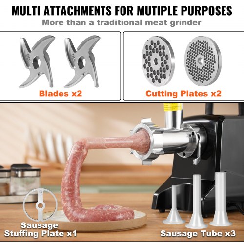 VEVOR Tritacarne Elettrico in Acciaio Inox Fusione di Allumino Capienza 5kg Potenza Nominale 575W, Tritacarne da Banco Funzione d'Inversione Capacità di Lavoro 190kg/H per Cucina Commerciale Salumeria