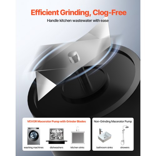 VEVOR Pompa Maceratrice per WC Fognario, 500 W, Portata 110 LPM, Prevalenza 8 m, con 4 Ingressi per l'Acqua, Macchina per Smaltimento delle Acque Reflue per Cucina, Seminterrato, Doccia