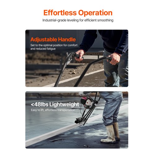 VEVOR Massetto in calcestruzzo a gas elettrico, set di barre con bordo dritto in pannello di alluminio da 11 piedi, motore vibrante per finitura in cemento a 4 tempi con maniglie