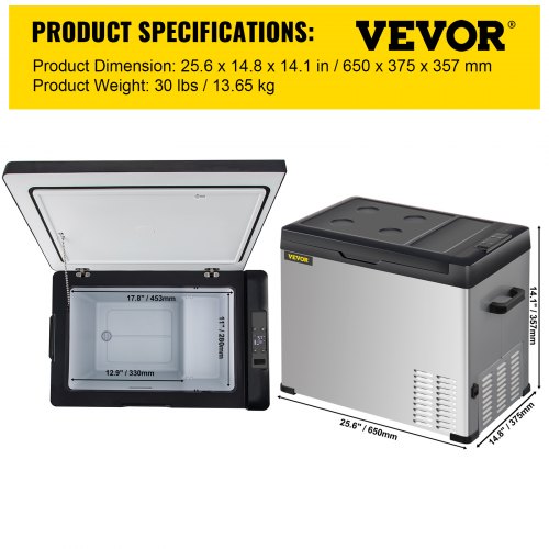 VEVOR Frigorifero Elettrico Portatile in Acciaio 30L per Auto da Viaggio Campeggio Attività Esterne, Mini Frigo Portatile a Compressore 60W per Barca Auto Camion Uso Esterno e Interno 12V Capacità 30L