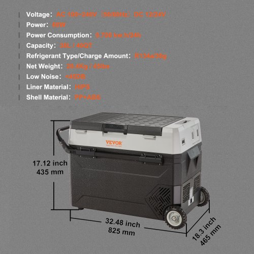 VEVOR Frigorifero Elettrico Portatile in Acciaio 40L per Auto da Viaggio Campeggio Attività Esterne, Mini Frigo Portatile a Compressore 60W per Barca Auto Camion Uso Esterno e Interno 12V Capacità 40L