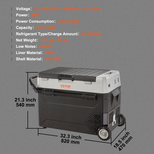 VEVOR Frigorifero Elettrico Portatile in Acciaio 50L per Auto da Viaggio Campeggio Attività Esterne, Mini Frigo Portatile a Compressore 60W per Barca Auto Camion Uso Esterno e Interno 12V Capacità 50L