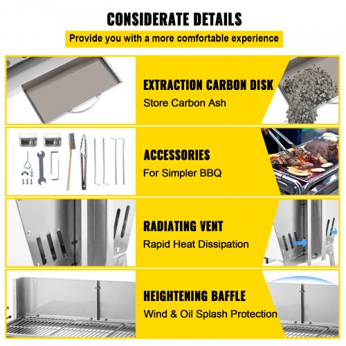 VEVOR Griglia per Agnello 130 kg Griglia per Barbecue per Maiale Capra, Girarrosto Commerciale in Acciaio Inossidabile con Motore Elettrico da 60 W con Scudo Termico, Lunghezza Girarrosto da 1427 mm
