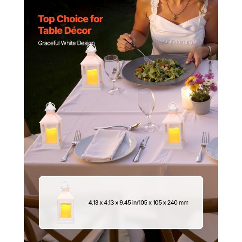 VEVOR Lanterne Decorative a Forma di Candela, Candele Elettriche a LED Senza Fiamma, Portacandele in Plastica con Vetro, Lanterne da Parete, per Tavoli da Matrimonio, Feste, Bianco 12 Pezzi