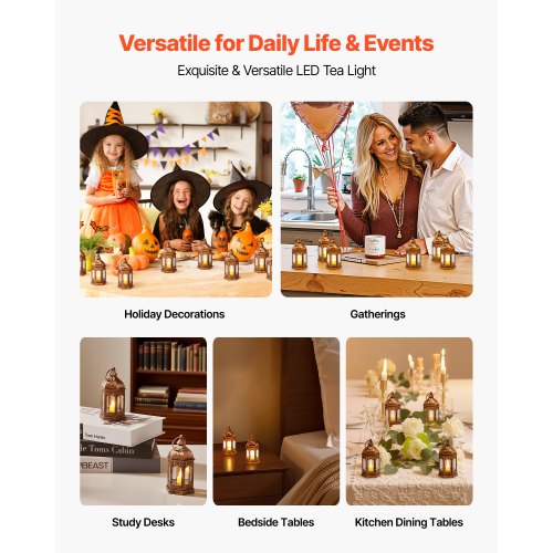 VEVOR Lanterne Decorative a Forma di Candela, Candele Elettriche a LED Senza Fiamma, Portacandele in Plastica con Vetro, Lanterne da Parete, per Tavoli da Matrimonio, Feste, Bronzo 12 Pezzi