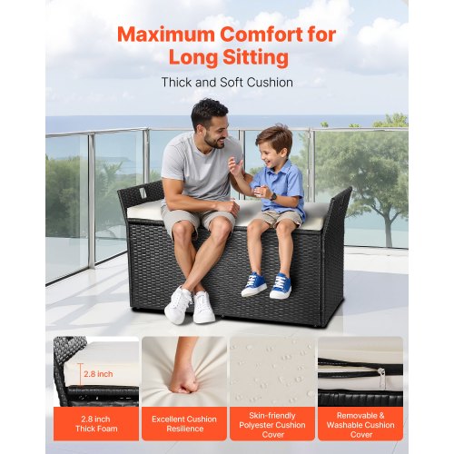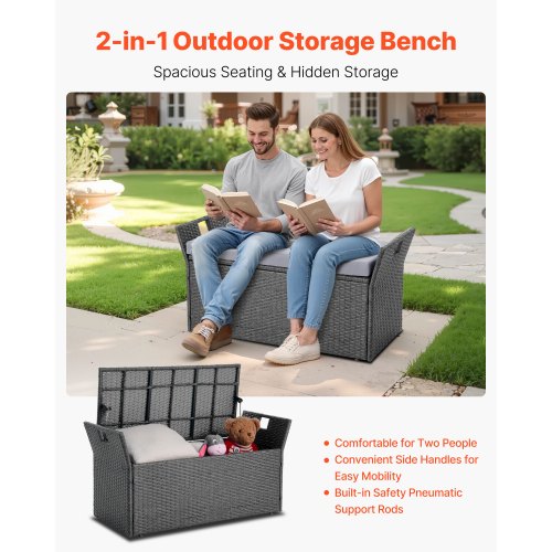 VEVOR Panca Portaoggetti da Esterno, Panca Portaoggetti in Rattan PE per 2 Persone, Contenitore con Cuscino Maniglia Laterale, Supporta max. 180 kg, Seduta da Giardino Decorazione per Balcone